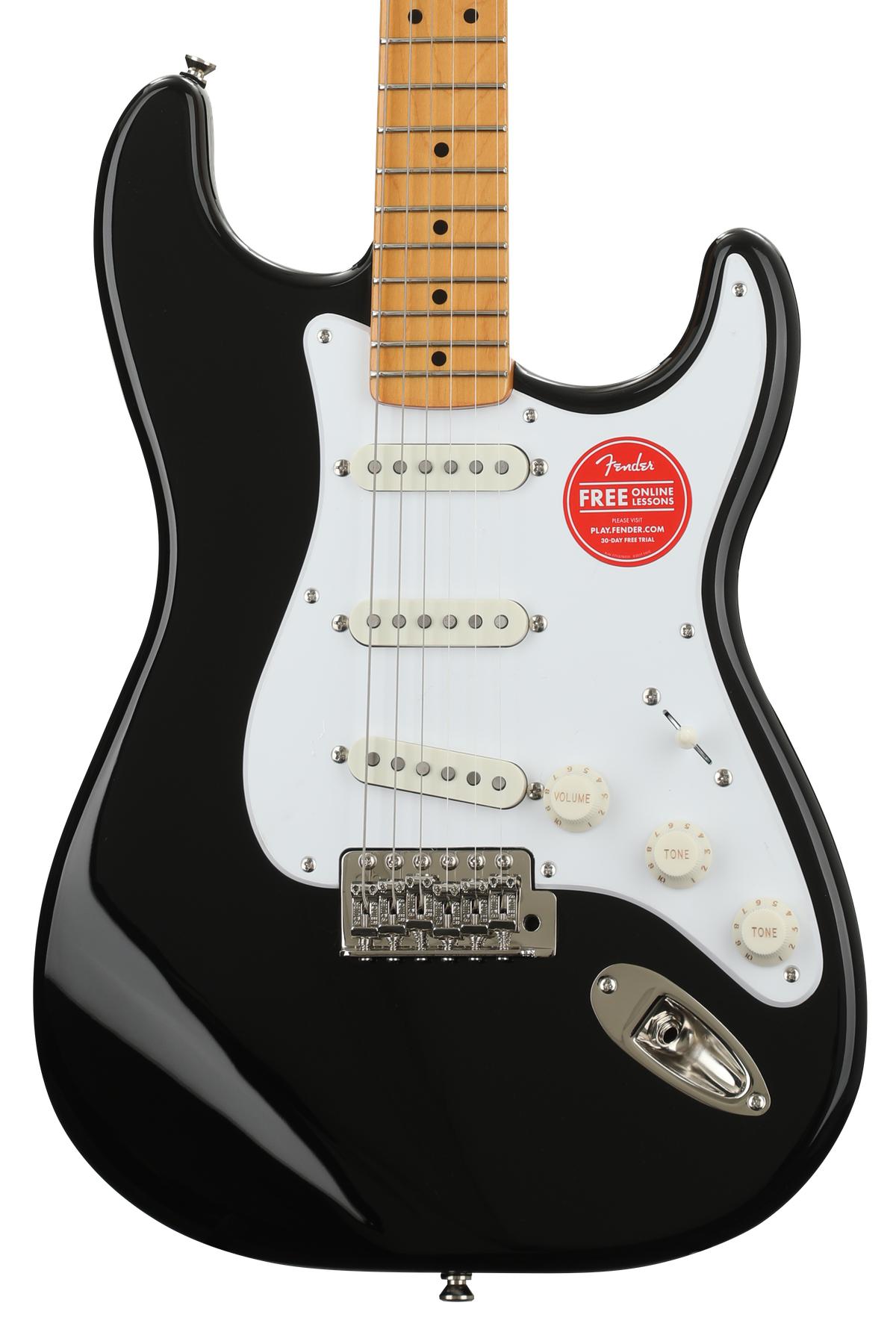 Squier Classic Vibe ’50s Strat has 4 different color options: 2-color sunburst, black, fiesta red, and white blonde.